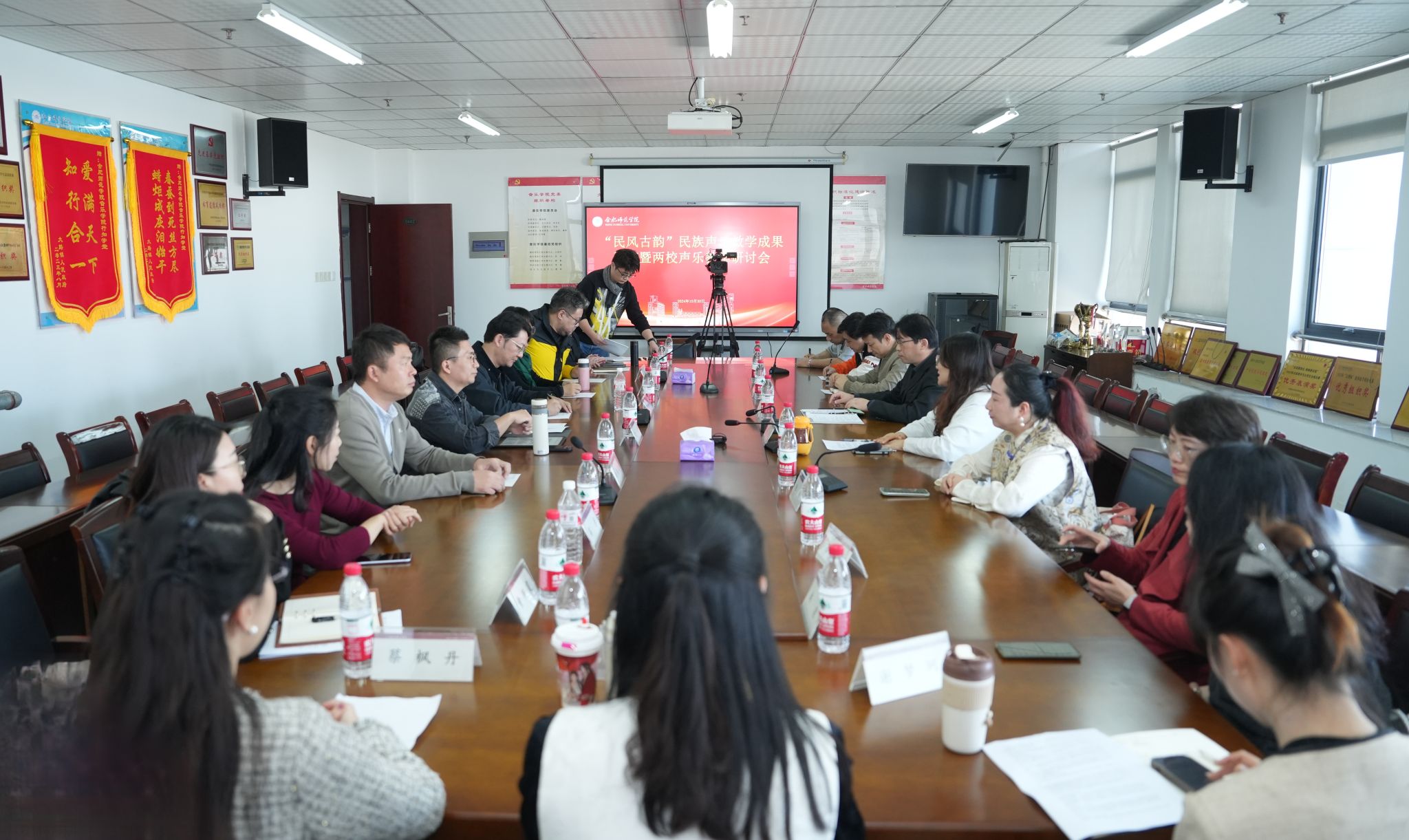 为积极探索民族声乐艺术的发展新路径,提升高校服务地方的创新发展能力,由yl23411永利集团与安徽艺术学院yl23411永利集团联合主办,yl23411永利艺术实践与创新中心承办的“民风古韵”两校民族声乐教学研讨会于10月30日下午,在yl23411永利行知楼1602会议室召开。出席研讨会的有yl23411永利集团和安徽艺术学院yl23411永利集团各位领导和相关专业教师代表。