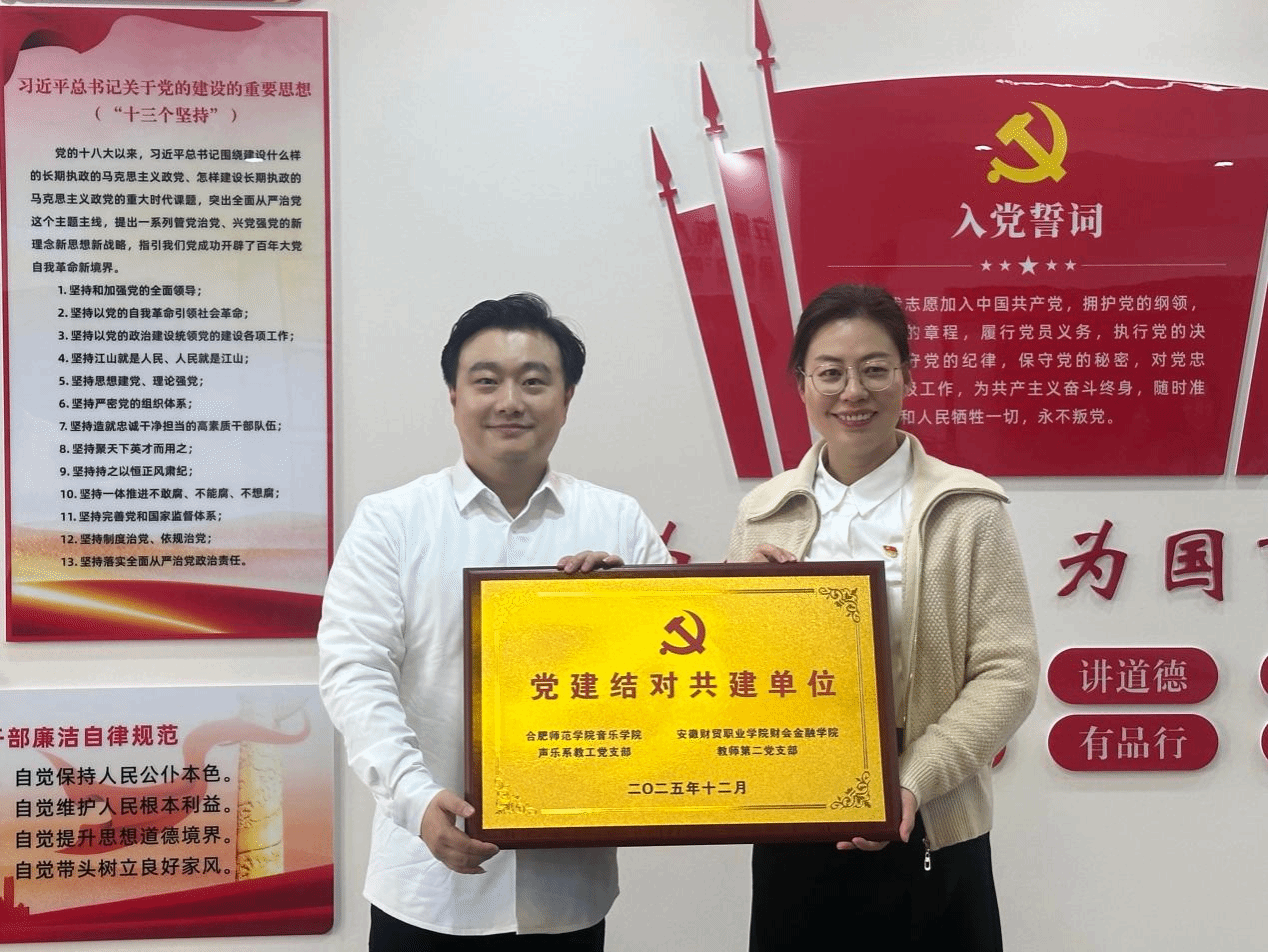 为深入推进基层党组织建设,搭建校际党建交流合作平台,12月17日,yl23411永利集团声乐系教工党支部一行前往安徽财贸职业技术学院,与该校财会金融学院教工第二党支部开展党建共建交流活动。